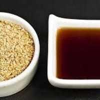 Sesame oil is an edible vegetable oil derived from sesame seeds. Besides being used as a cooking oil, it is used as a flavor enhancer in many cuisines, having a distinctive nutty aroma and taste.
